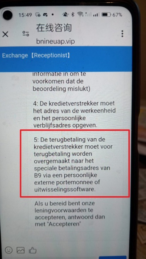 [22-1 18:04] Mary Su Wanrong: Beste, ik ben geen klantenservice, dus ik kan je niet helpen een oplossing te vinden, het geld dat ik je heb geleend, en het probleem zal zich voordoen omdat je lening te laat is, als je niet te laat bent, zal het niet gebeuren