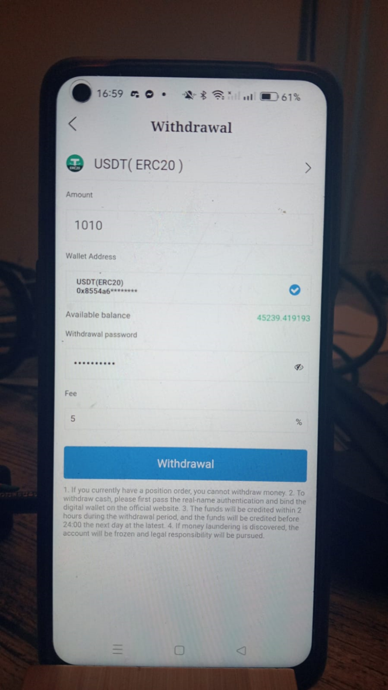 Je gaat me toch niet weer vertellen dat ik nu weer een enorm bedrag moet storten voordat ik mijn geld daadwerkelijk kan gebruiken? Het genoemde alternatief om bijna 2 jaar te wachten om 100 punten te krijgen is natuurlijk ook volkomen absurd. Ik heb immers ook met veel moeite het externe geld van zelfs 35000 extern van jou moeten lenen voor het geleende bedrag van 4000 USDT Ik hoop dus echt dat je nu niet wilt aankondigen dat ik nu zelfs het bedrag van 5000 USDT weer via een externe wallet wil krijgen.