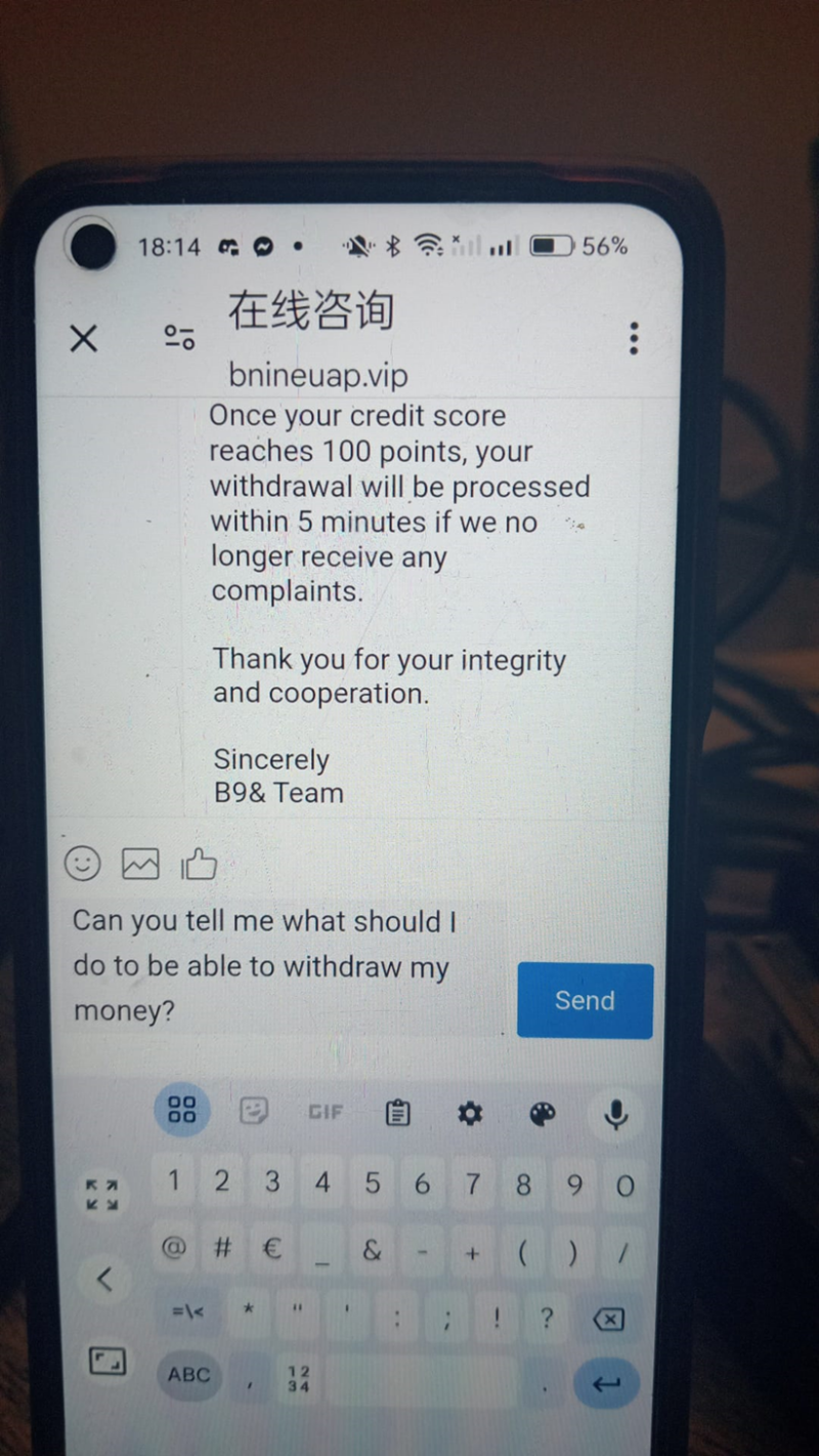[13-1-2025 22:14] Mary Su Wanrong: Medewerkers van B9 nemen niet proactief contact met u op. U moet contact opnemen met hun klantenservice op het B9-handelsaccountplatform